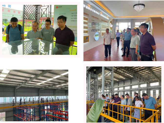 隨后,在商務接待部的帶領下,先后參觀了強粘博物館-強粘公園-強粘會所-卷材生產車間-涂膜生產車間以及高分子車間,全程現場了解了防水材料的生產制造并對桂湖企業整體情況表示出高度的肯定和贊賞。