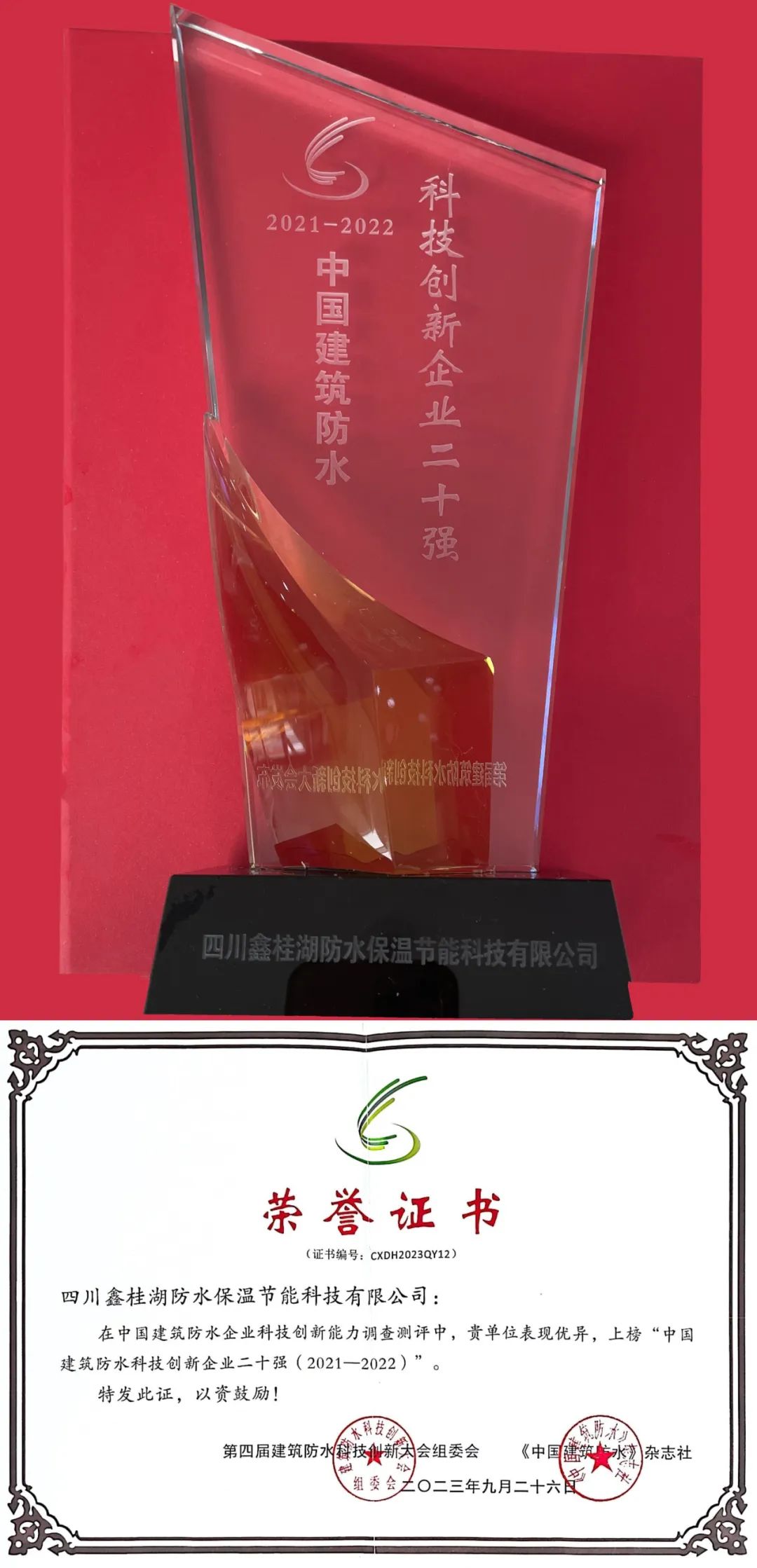 9月25—27日,第四屆建筑防水科技創新大會在南京召開。桂湖防水受邀參加本次會議,并獲“中國建筑防水科技創新企業二十強”榮譽稱號,是西南地區建筑防水行業獨家獲此殊榮的企業。