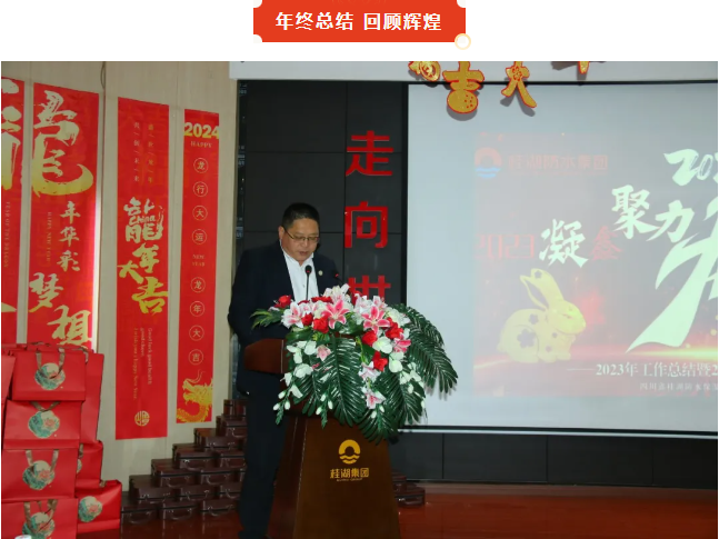 總經理劉鐵軍對生產總部工作進行全面匯報。2023年桂湖防水在安全生產、綠色生產、環保治理、新產品開發、高校技術合作、精細化管理等方面都取得了一定成績。公司已從粗放式發展向高質量發展逐步過渡。隨著防水建筑材料市場新一輪周期演變的開始,在眾多相互因素疊加的復雜局面下,全體桂湖人要振奮精神、持之以恒、永不懈怠向著正確的方向不斷前進。