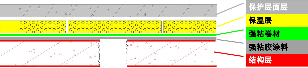 方案二:CGP強(qiáng)粘自粘耐根穿刺防水卷材+強(qiáng)粘膠