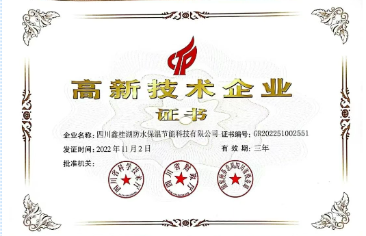 公司以創新性發展動力,旗下四川鑫桂湖防水保溫節能科技有限公司為高新技術企業和四川省“專精特新”中小企業,取得“高性能生態防水材料工程技術研究中心”和四川省企業技術中心認定。其中“CGP強粘蠕變型高分子防水卷材的研制及產業化應用”成果經科學技術評價,成果水平為國內領先。